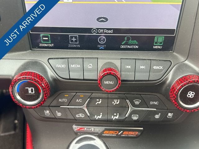 Under the hood, this Z06 model is powered by a potent V8 engine mated to an 8-speed paddle-shift automatic transmission, delivering an adrenaline-pumping driving experience. The Z07 Performance Package elevates this Corvette's capabilities even further, featuring carbon ceramic brakes, Magnetic Selective Ride Control, and a set of high-performance Michelin Pilot Super Sport Cup 2 tires. The Carbon Flash-Painted Ground Effects Package adds a touch of menacing style, with a sculpted splitter, rockers, and a more aggressive rear spoiler.