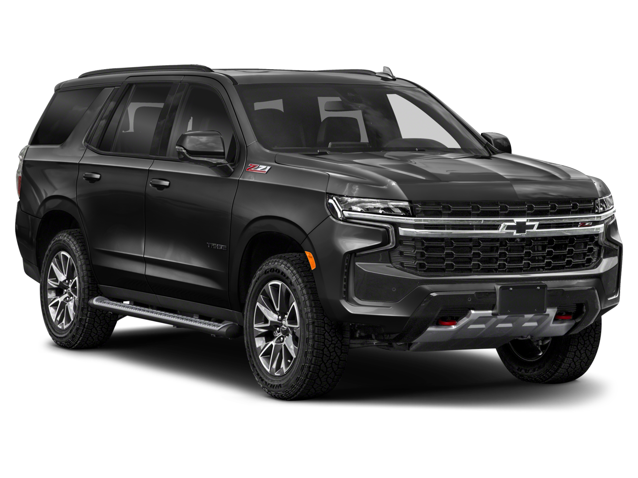 Boasting a striking Black exterior, the Tahoe Z71 commands attention with its bold and sophisticated styling. Enhancing its rugged appeal, the available Black Roof Rack Cross Rails and Black Tubular Assist Steps seamlessly integrate to create a cohesive, eye-catching appearance.