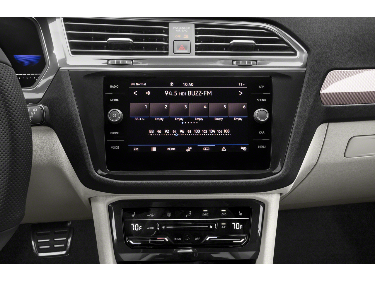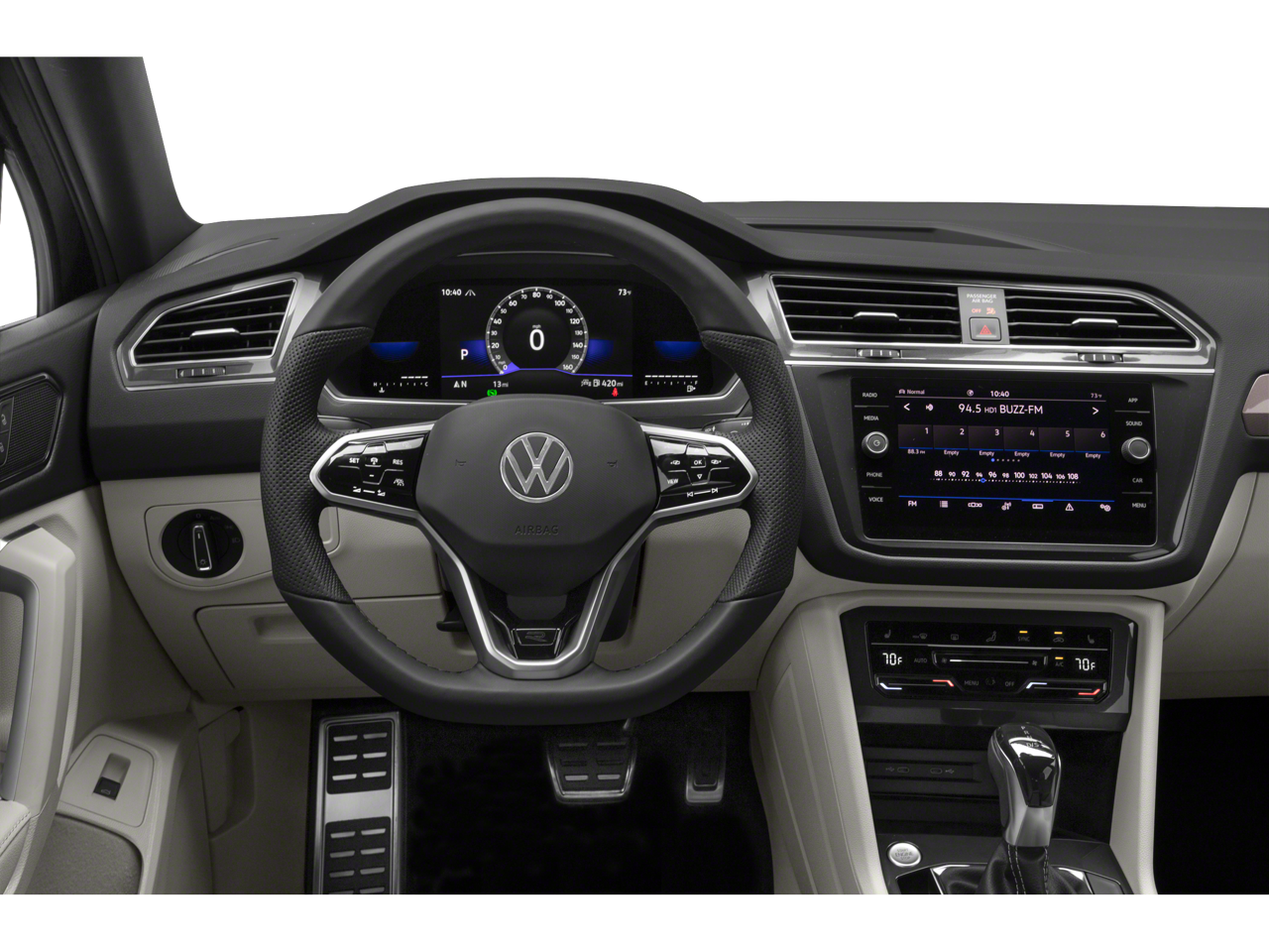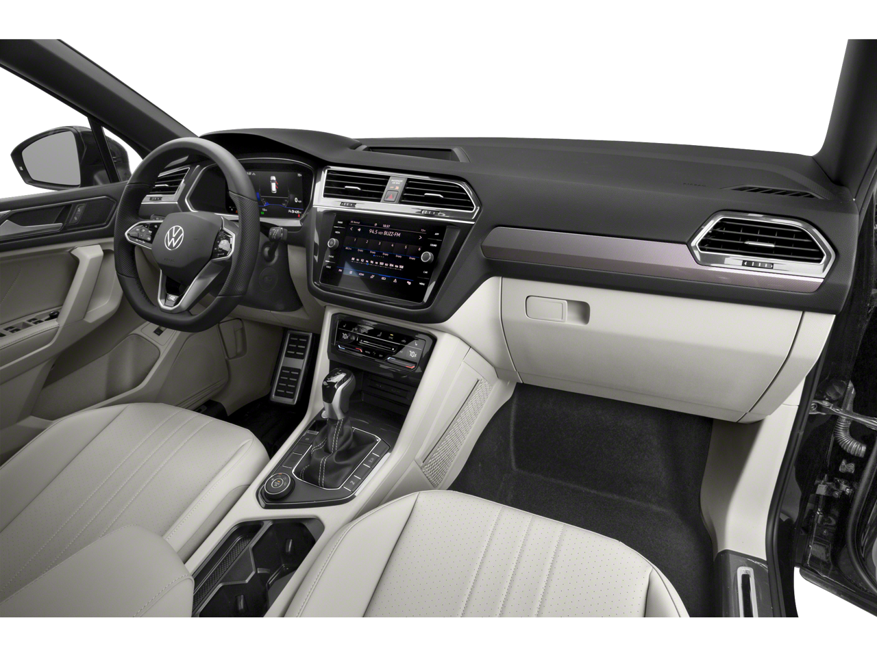 The interior of the 2023 Volkswagen Tiguan 2.0T SE R-Line Black is a sanctuary of refined comfort and advanced technology. Sink into the heated front seats, surrounded by the premium V-Tex Leatherette upholstery, and let the dual-zone automatic climate control keep you and your passengers in perfect harmony. The power driver's seat and tilt/telescoping steering wheel ensure a personalized driving position, while the Composition Media infotainment system with SiriusXM keeps you connected and entertained.