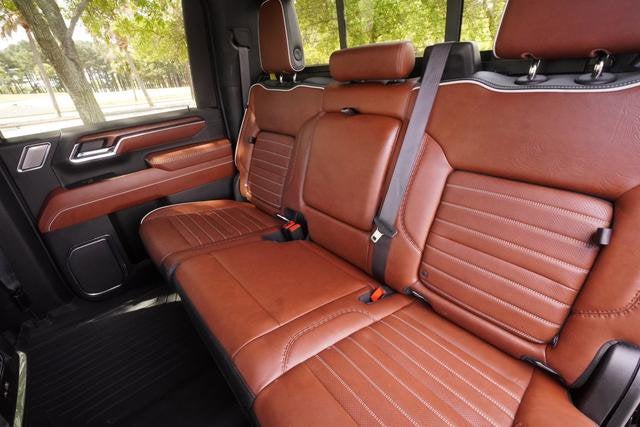 Step inside and experience the epitome of luxury. The Denali Ultimate's cabin is adorned with premium materials, including Full Grain Leather Seat Trim and Genuine Wood Dashboard and Door Panel Inserts. The 16-Way Power Driver and Passenger Seats with Lumbar Support ensure unparalleled comfort, while the Heated and Ventilated Front Seats and Heated Rear Outboard Seats keep you cozy in any weather.