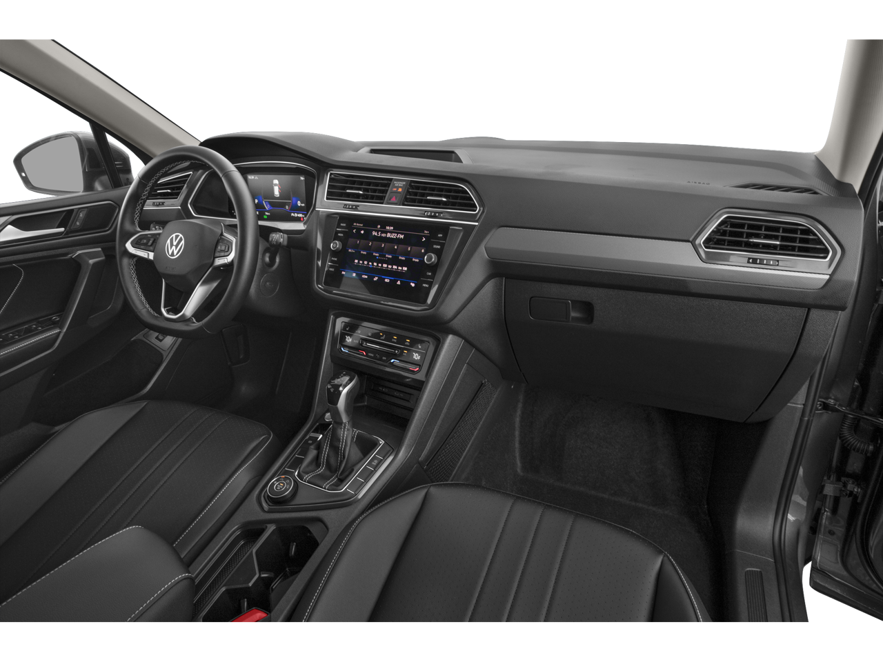 Check out all these great options 3.33 Axle Ratio, 3rd row seats: bench, 4-Wheel Disc Brakes, 4-Wheel Independent Suspension, 6 Speakers, ABS brakes, Air Conditioning, Alloy wheels, AM/FM radio: SiriusXM with 360L, Auto-dimming Rear-View mirror, Automatic temperature control, Brake assist, Bumpers: body-color, Compass, Delay-off headlights, Driver door bin, Driver vanity mirror, Dual front impact airbags, Dual front side impact airbags, Electronic Stability Control, Emergency communication system: VW Car-Net Safe & Secure 5-year, Exterior Parking Camera Rear, Four wheel independent suspension, Front anti-roll bar, Front Bucket Seats, Front Center Armrest, Front dual zone A/C, Front reading lights, Fully automatic headlights, Heated door mirrors, Heated Front Seats, Heated front seats, Illuminated entry, Leather Shift Knob, Low tire pressure warning, Occupant sensing airbag, Outside temperature display, Overhead airbag, Overhead console, Panic alarm, Passenger door bin, Passenger vanity mirror, Perforated V-Tex Leatherette Seating Surfaces, Power door mirrors, Power driver seat, Power Liftgate, Power steering, Power windows, Radio data system, Radio: MIB3 Composition Media AM/FM/HD, Rain sensing wipers, Rear anti-roll bar, Rear reading lights, Rear seat center armrest, Rear window defroster, Rear window wiper, Remote keyless entry, Security system, Speed control, Speed-sensing steering, Split folding rear seat, Spoiler, Steering wheel mounted audio controls, Tachometer, Telescoping steering wheel, Tilt steering wheel, Traction control, Trip computer, Turn signal indicator mirrors, Variably intermittent wipers, and Wheels: 18 Dark Graphite Painted 10-Spoke Alloy. Black 2024 Volkswagen Tiguan 2.0T SE FWD 8-Speed Automatic with Tiptronic 2.0L TSI DOHC